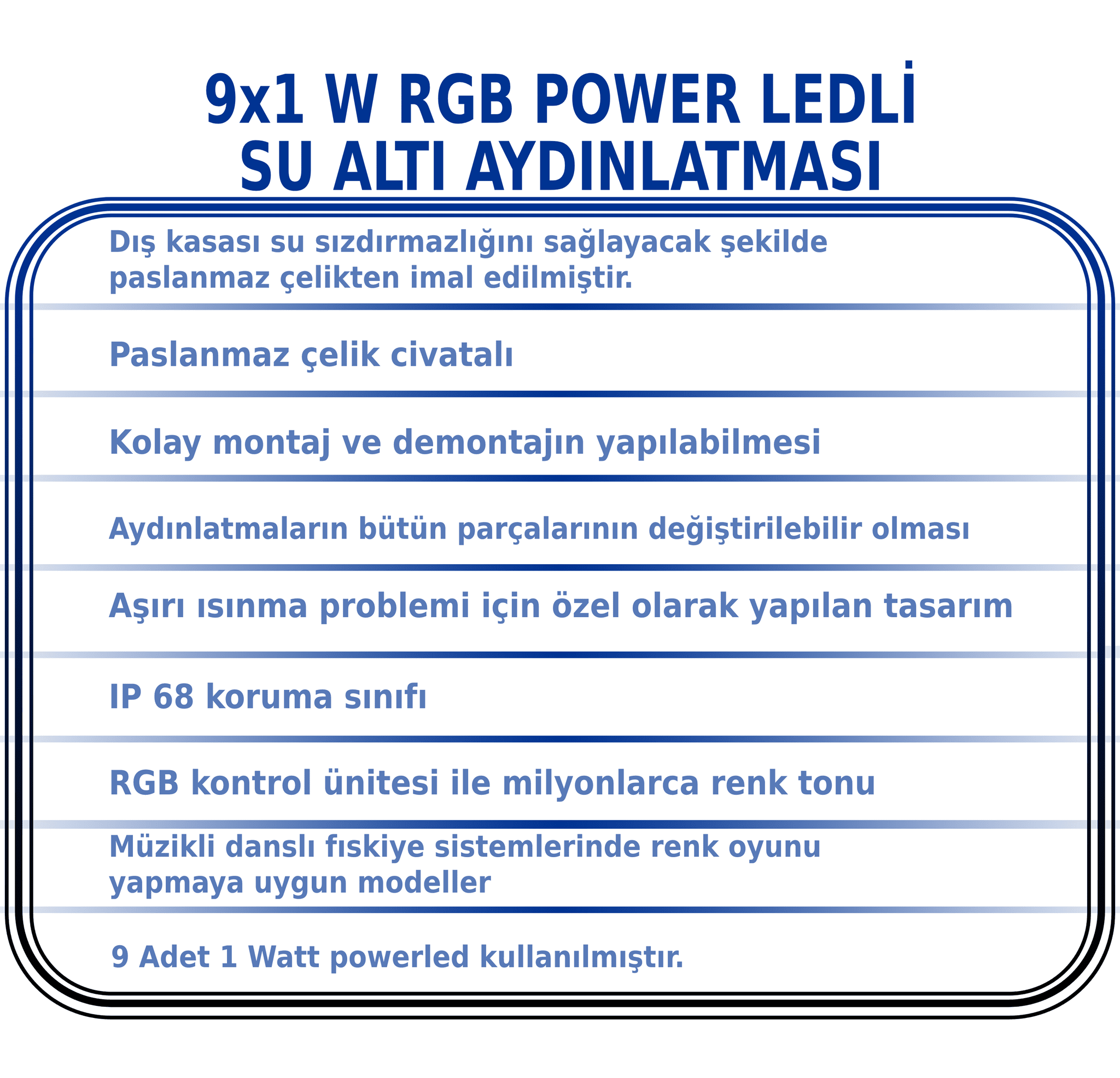 9X1 W RGB POWER LEDLİ SU ALTI AYDINLATMASI